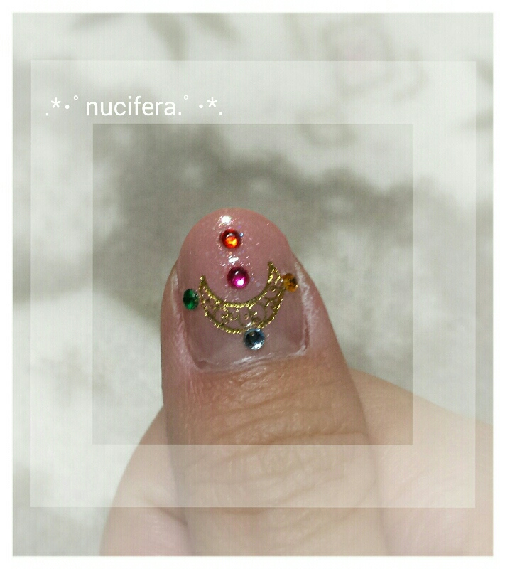 ピンク系でグラデして、月のシール使用。